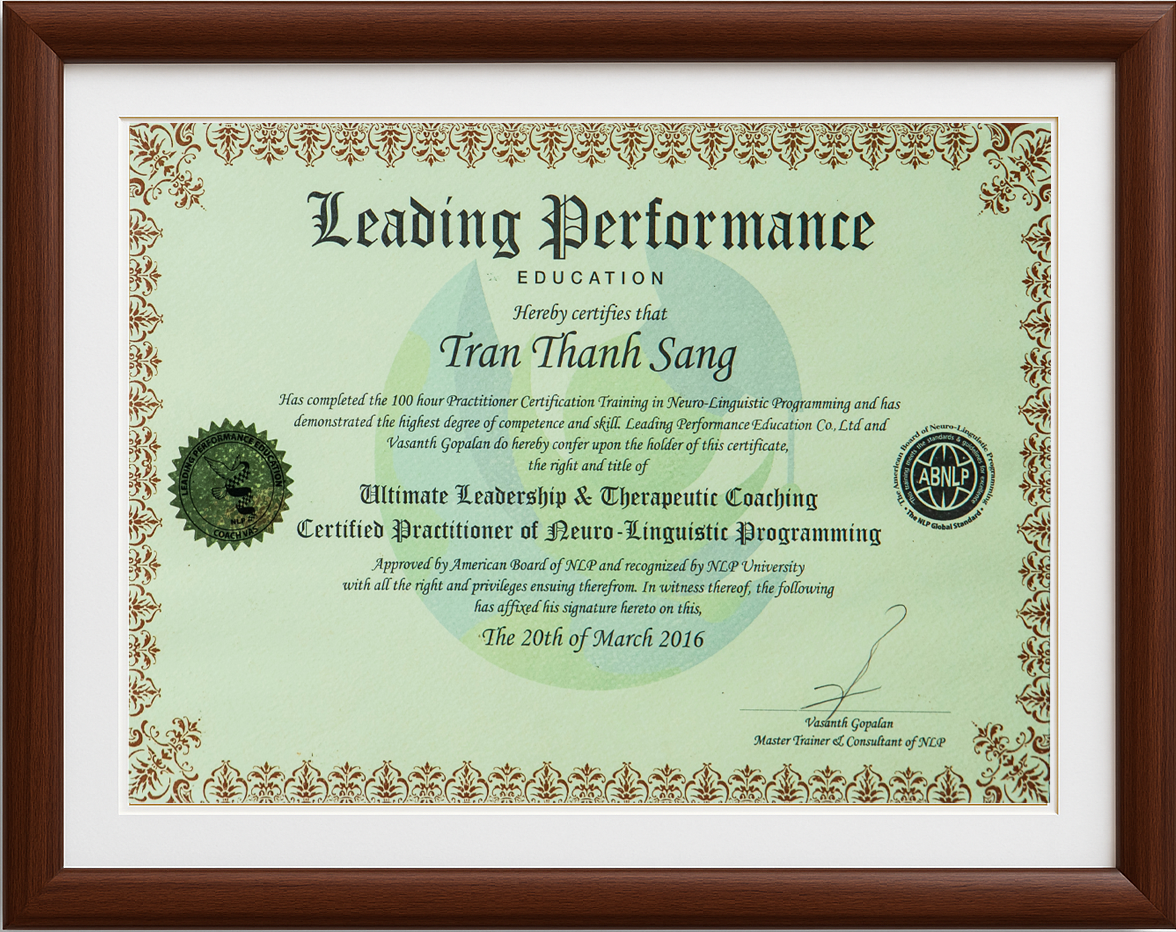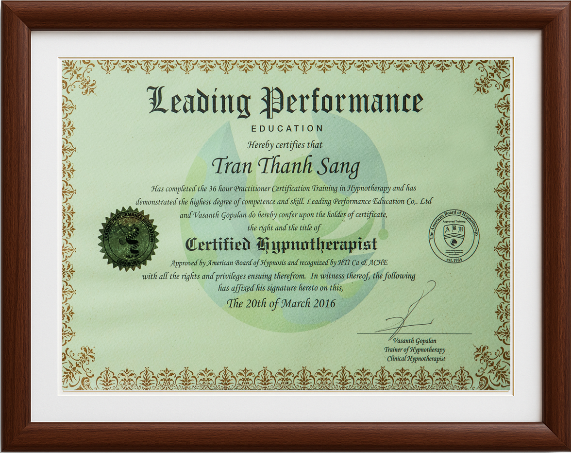 ? Các chứng chỉ chuyên môn của Thầy Sang bao gồm: